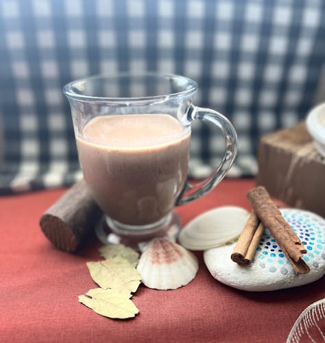 Cinnamon sticks, bay leaves, nutmeg, ground cloves, anise extract, water, sugar, cocoa stick, coconut milk, carnation milk